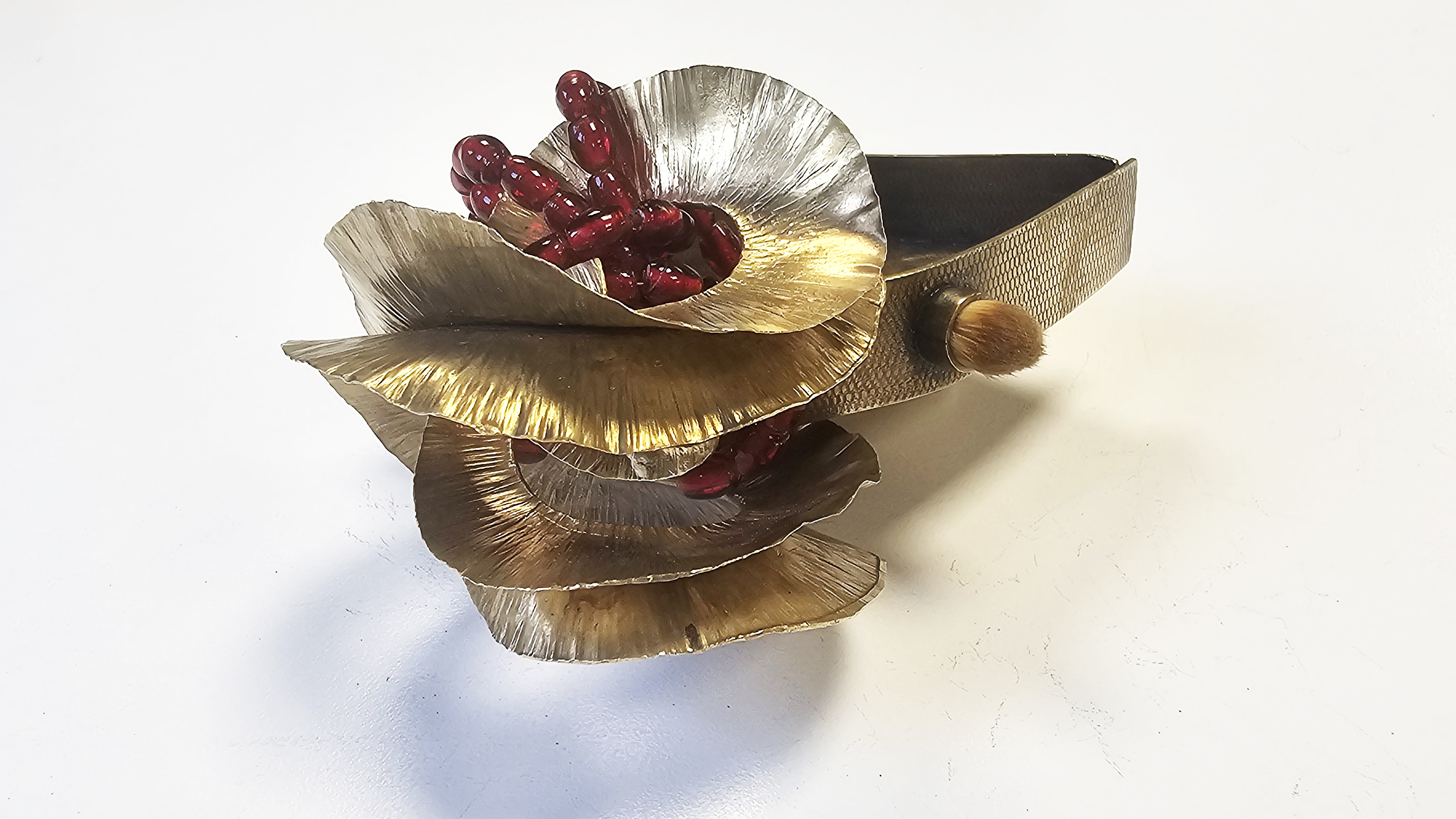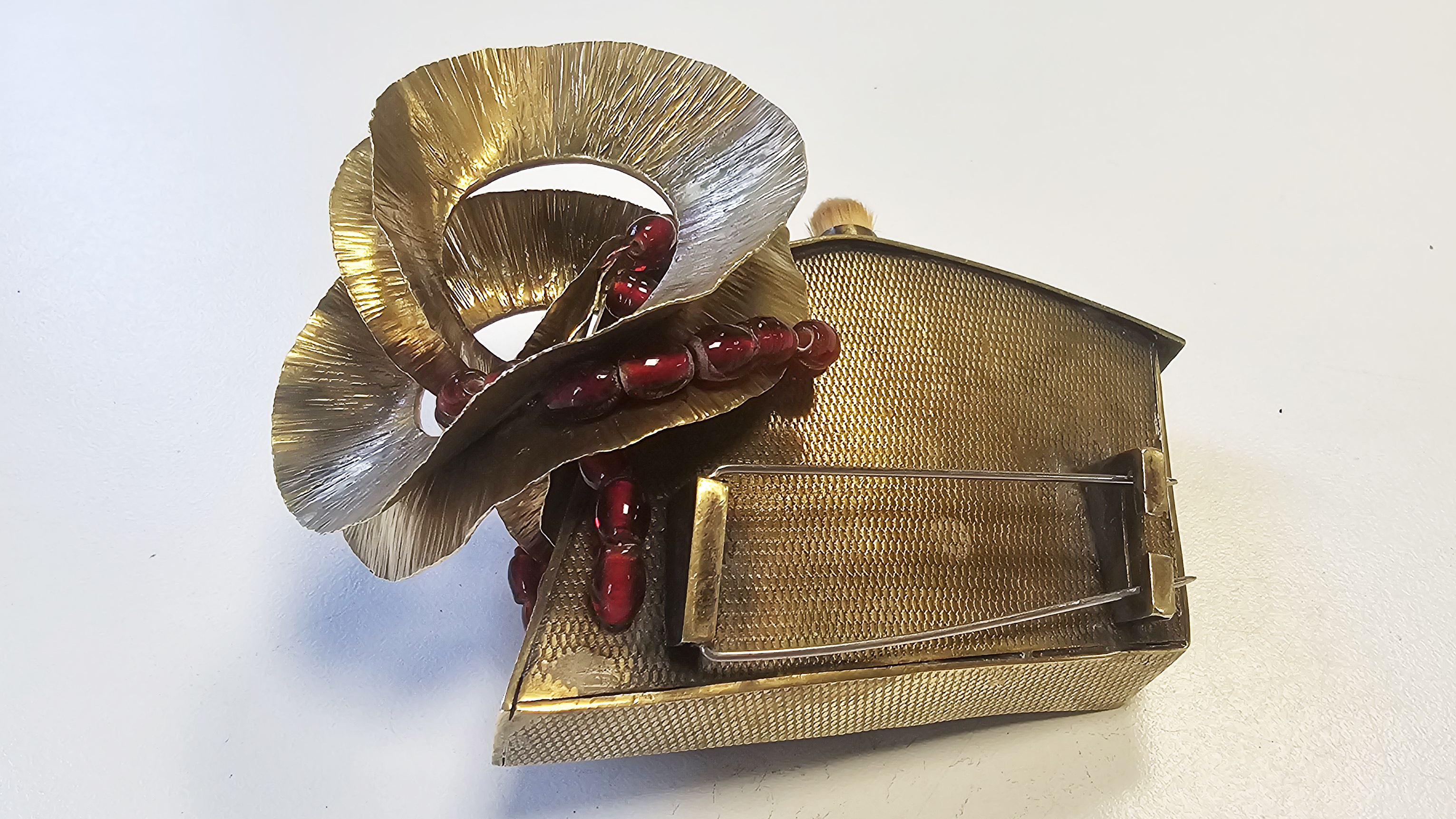Laiton, pinceaux de maquillage, perles de verre, cable